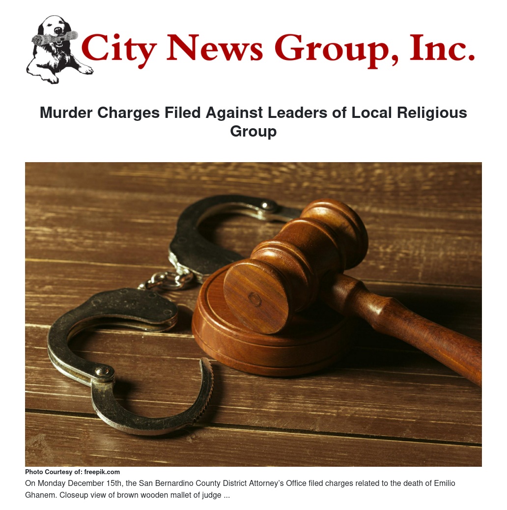 On Thursday, December 11, 2025, a joint operation involving Redlands Police Department, Colton Police Department, California Department of Justice, Riverside Sheriff’s Office and San Bernardino County District Attorney’s Office took place in the Cities of Hemet and Colton, to arrest several individuals belonging to a religious high-control group known as His Way Spirit Led Assemblies.