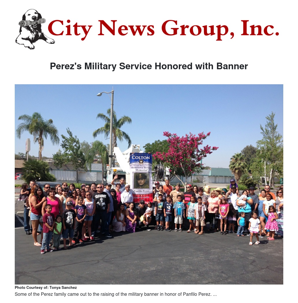 The Perez family saw the banners around the city of Colton and it occurred to them, they should put one up for their father, Panfilo Perez, who served in the army. The banner was installed on Valley Blvd in front of the Stater Brothers on June 23.