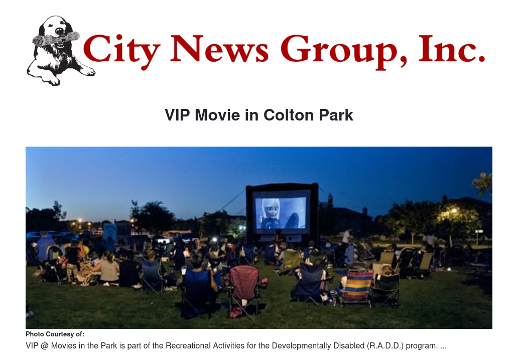 The Colton Community Services Department is currently taking sign-ups for VIP @ Movies in the Park on July 5, 2014.
