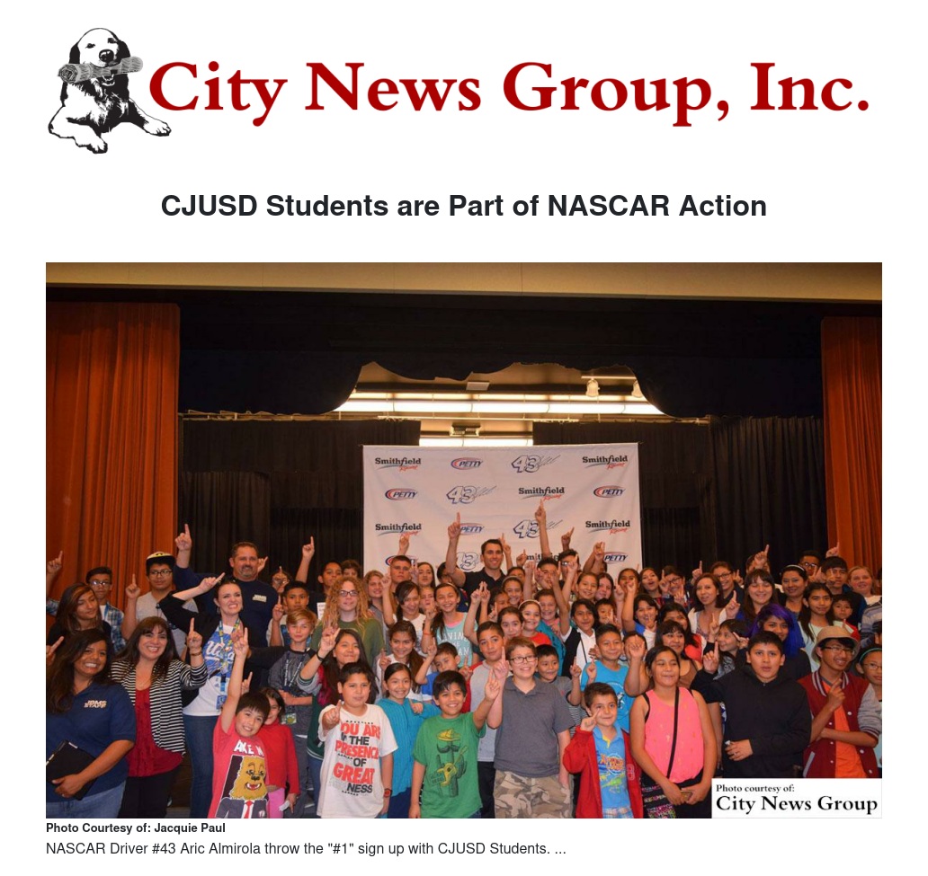 Several CJUSD schools took part in the excitement as the NASCAR Sprint Cup Series came to Fontana last weekend.