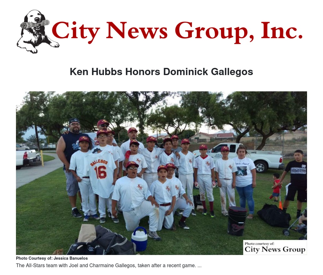 Dominick, a former student at Ulysses S. Grant Elementary School in Colton, had been a part of the league since he was 5 years old and was a previous member of the Ken Hubbs All-Stars team.