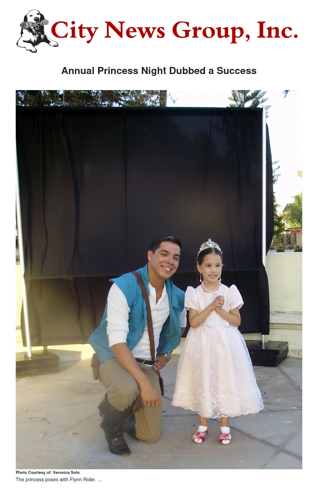 Dressing up in Disney characters is always fun, especially for the children. On Saturday July 5th, the Colton Community Services held a free showing of the movie Tangled for the Annual Princess Night held at Fleming Park. The children were encouraged to come dressed up as their favorite princess. Many of the girls came in dressed and even took pictures with Flynn Rider--one of the characters from the movie Tangled.