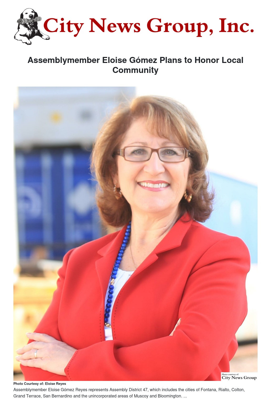 Assemblymember Eloise Gómez Reyes represents Assembly District 47, which includes the cities of Fontana, Rialto, Colton, Grand Terrace, San Bernardino and the unincorporated areas of Muscoy and Bloomington.