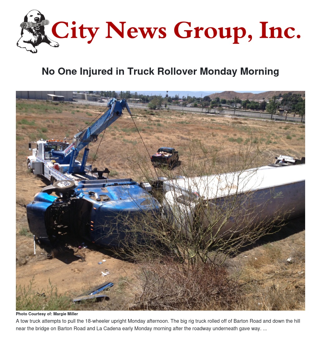 Several residents called the City News inquiring about an 18-wheeler semi-truck that rolled some 40 feet down an embankment near the bridge on Barton Road near La Cadena.