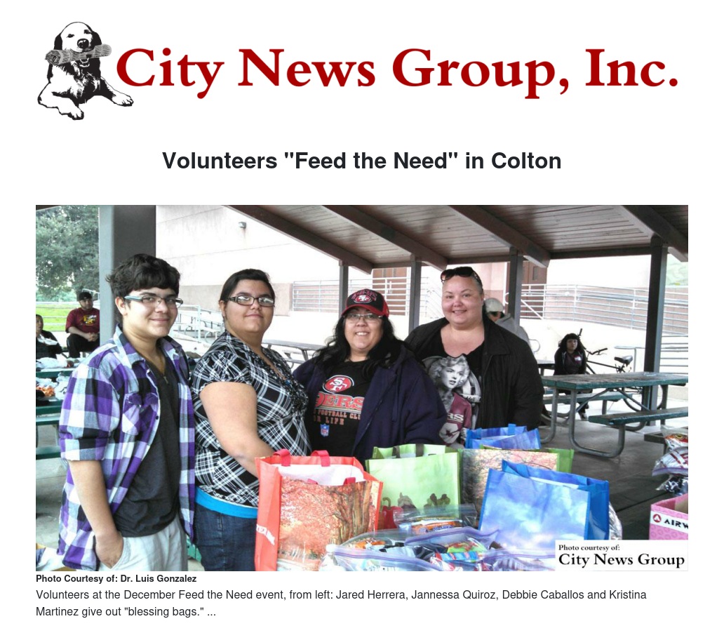 "What I love about the Feed the Need program is they get clothes and food and they help in absolutely any way they can. I believe in that," Gonzalez said. Having worked for the Salvation Army for 20 years, Gonzalez joined Colton Happenings about three years ago and looked for similar community outreach events in the city like the ones the Salvation Army holds for the area.