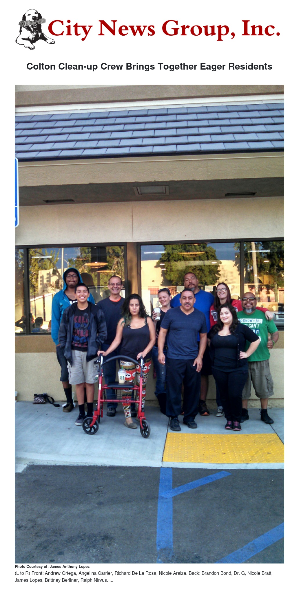 On Oct. 4, the Colton Clean-up Crew met for its inaugural “kick-off” event, and clean up the Valley Boulevard corridor between Starbucks and the railroad tracks.