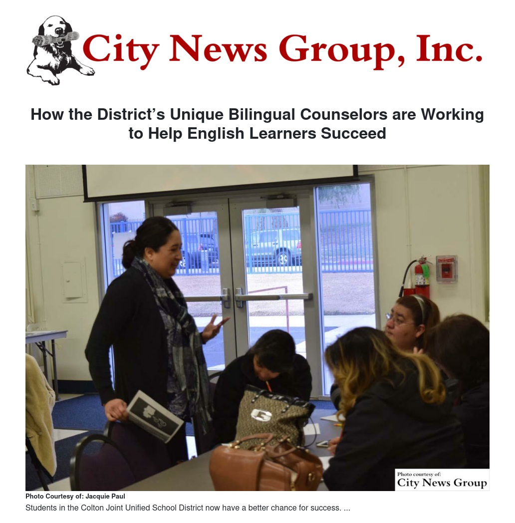 Students in the Colton Joint Unified School District (CJUSD) now have a better chance for success -- thanks to the recent addition of English learner (EL) counselors. The District’s three EL counselors – Isabel Fernandez, Belen Rubio, and Denise DeRobles – serve as an extra safety net for middle and high school students and parents – ensuring that they understand all that is needed to reach their goals. No other school districts in San Bernardino County offer these unique counseling services.