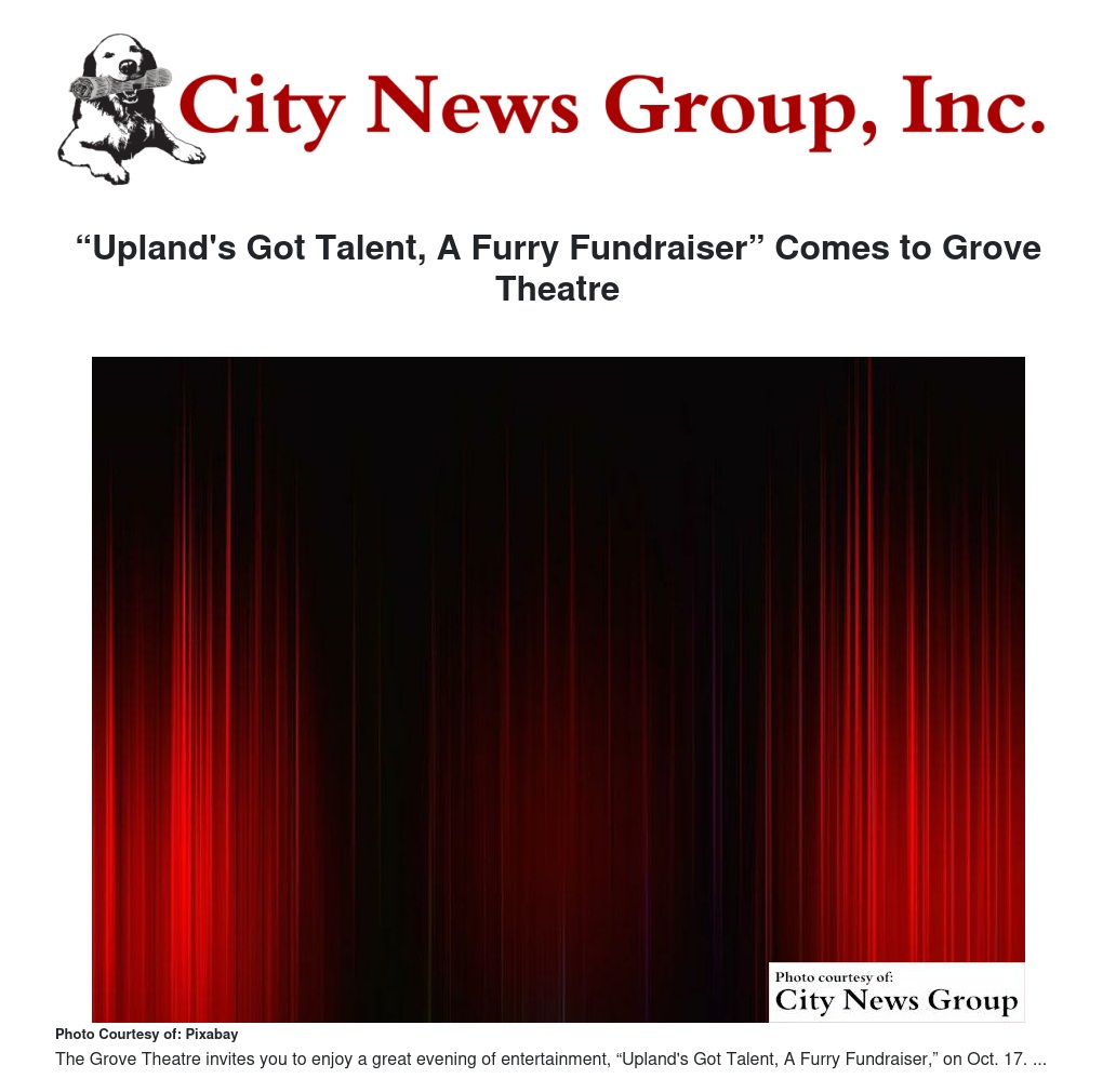 “Upland's Got Talent, A Furry Fundraiser” Comes to Grove Theatre