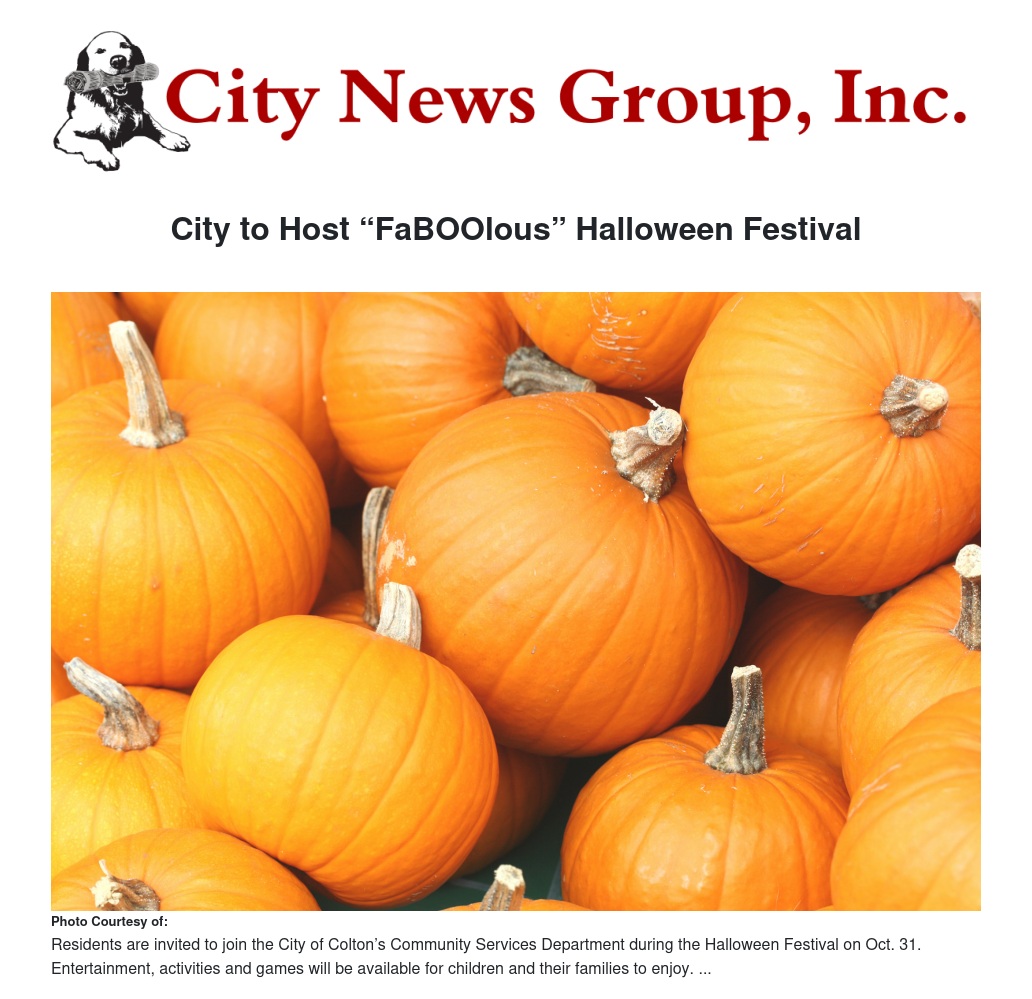 The City of Colton’s Community Services Department is gearing up to host a “faboolous” Halloween Festival.