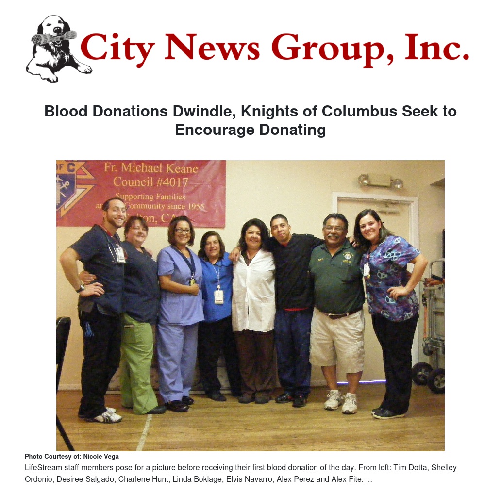 Blood Donations Dwindle, Knights of Columbus Seek to Encourage Donating