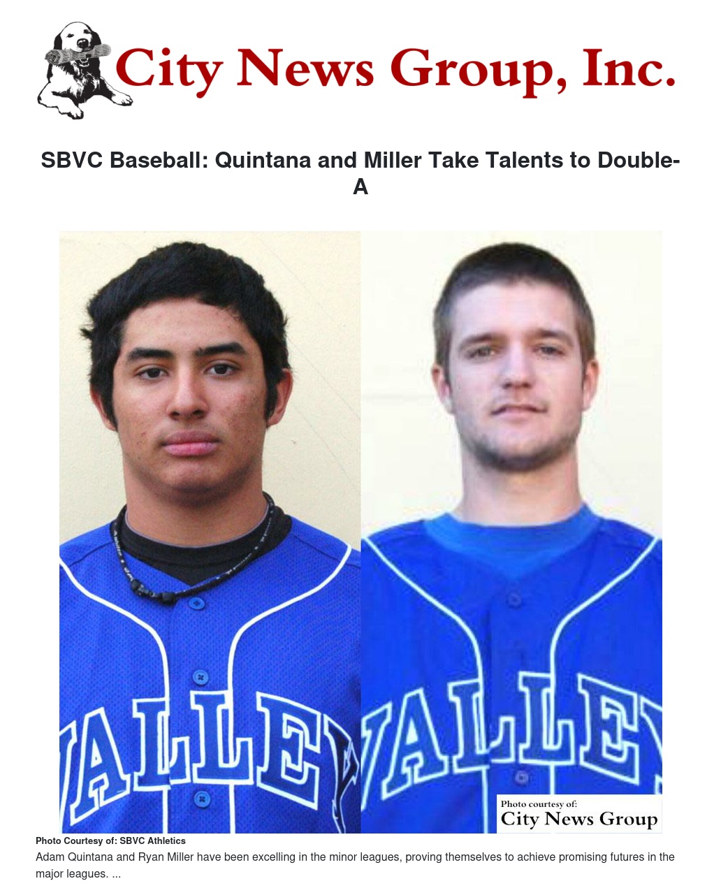 Former San Bernardino Valley College Baseball first team All-American and former baseball assistant coach, Adam Quintana from San Bernardino, and former SBVC Baseball first team All-American catcher, Ryan Miller from Hemet, have both been promoted to Double-A teams within their respective baseball organizations.