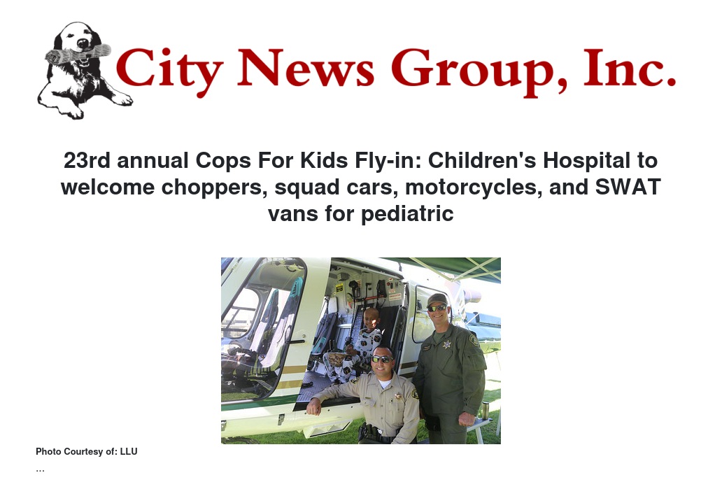 Police helicopters, motorcycles, and cars are set to make their way to Loma Linda University Children’s Hospital (LLUCH) at the 23rd annual Cops for Kids Fly-In. Southern California law enforcement officers, and aviation and air support programs are expected to participate in the event.