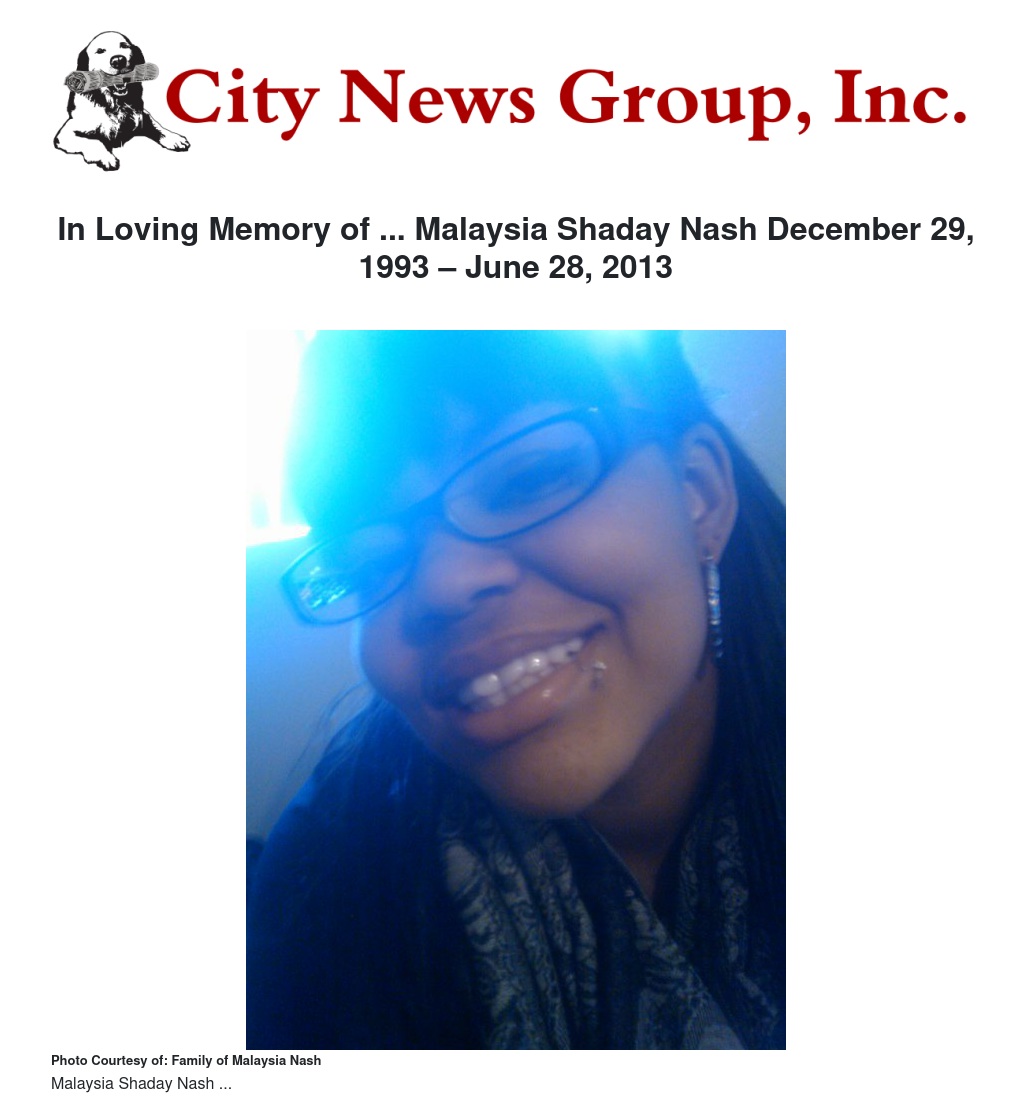 In Loving Memory of ... Malaysia Shaday Nash December 29, 1993 – June 28, 2013