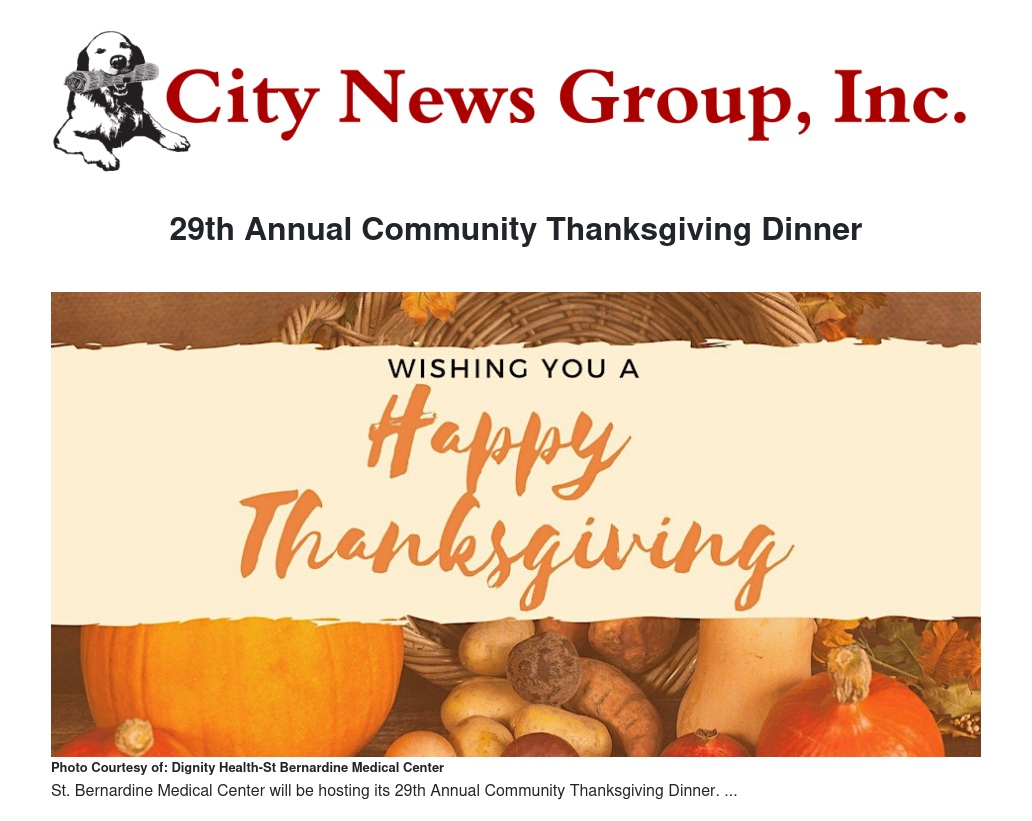 Each year, Dignity Health - St. Bernardine Medical Center welcomes hundreds of community members to celebrate Thanksgiving with a traditional holiday meal.