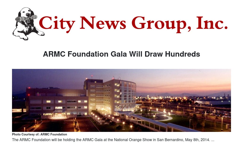 Mark your calendars for the Arrowhead Regional Medical Center (ARMC) Gala to be held on May 8th at the National Orange Show. The Gala Committee was led by Patty Holohan, who has remained determined to bring the event, through her battle with cancer and chemo therapy.