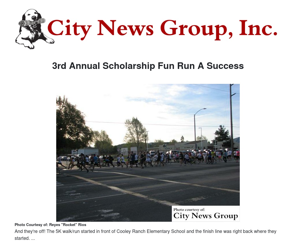 Starting bright and early at 8 a.m., over 80 Colton community members, students, parents, and active runners gathered at Cooley Ranch Elementary School to start the 3.1 mile-long journey of this year's 3rd Annual Scholarship 5K Fun Run, hosted recently by the Kiwanis Club of Cooley Ranch.