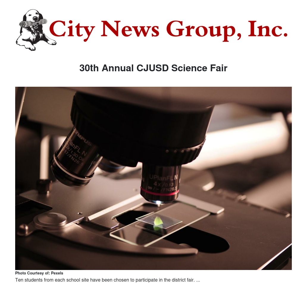 30th Annual CJUSD Science Fair by Jacquie Paul - City News Group, Inc.