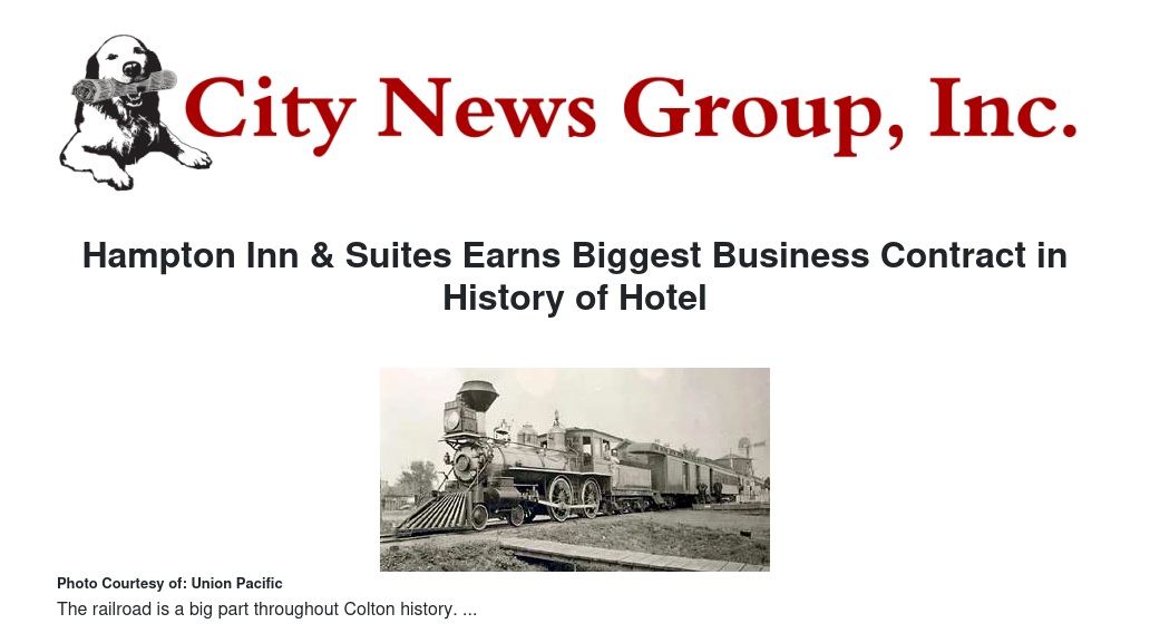 Effective Wednesday, Aug. 20, Hampton Inn & Suites in Colton landed their biggest business account in the history of their over 30-year-old local hotel.