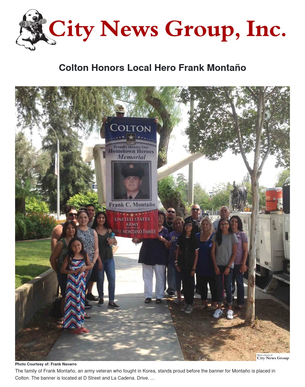 COLTON >> Frank Montaño, an army veteran who fought in Korea, was honored by a banner with his name and photo for all of Colton to see.