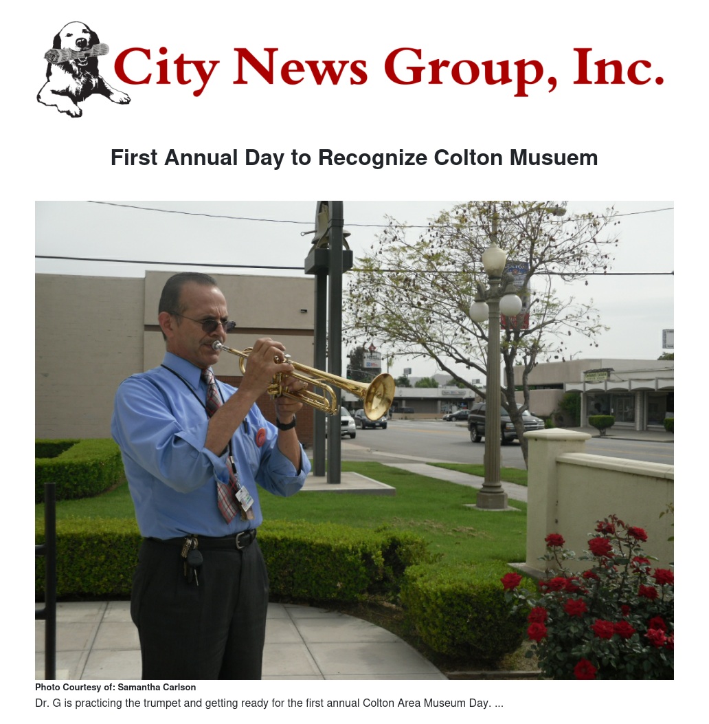 The first annual Colton Area Museum (CAM) Day is going to be held in Colton on Saturday May 3rd. The event is being organized by Dr. G (Luis Gonzalez), a Colton educator, musician, and historian. He has been working with the CAM for three years and is a member of the board of directors and a museum docent.
