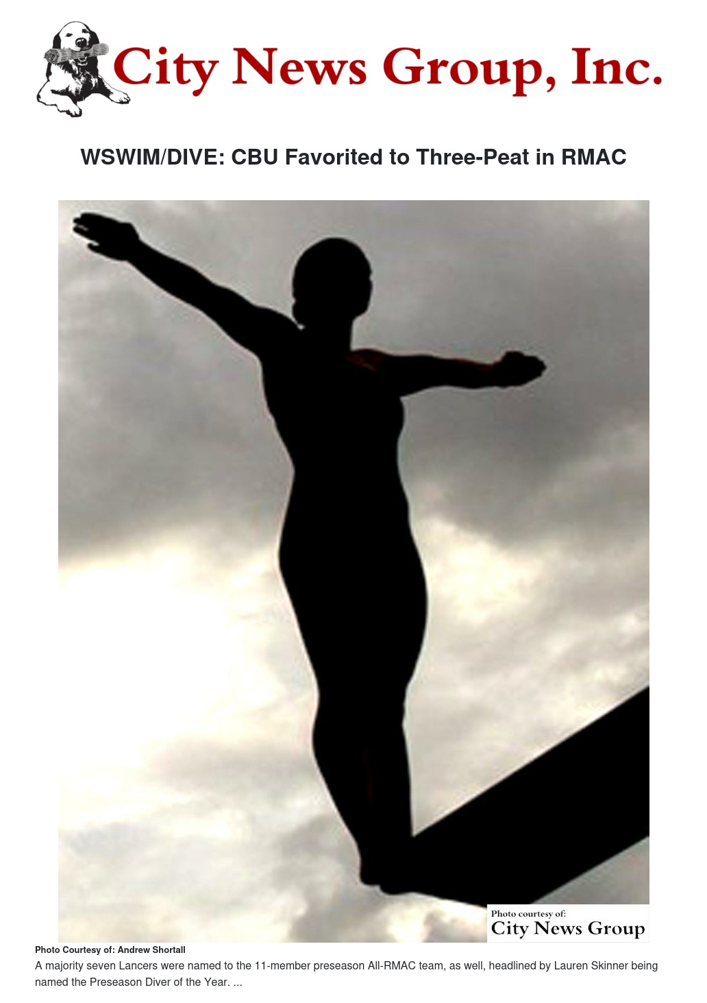 A majority seven Lancers were named to the 11-member preseason All-RMAC team, as well, headlined by Lauren Skinner being named the Preseason Diver of the Year. Courtney Chacon, Christie Halverson, Yosita Hapsari, Alena Rumiantceva, Robin Smallwood and Kristina Tchernyshev joined Skinner on the all-preseason team.