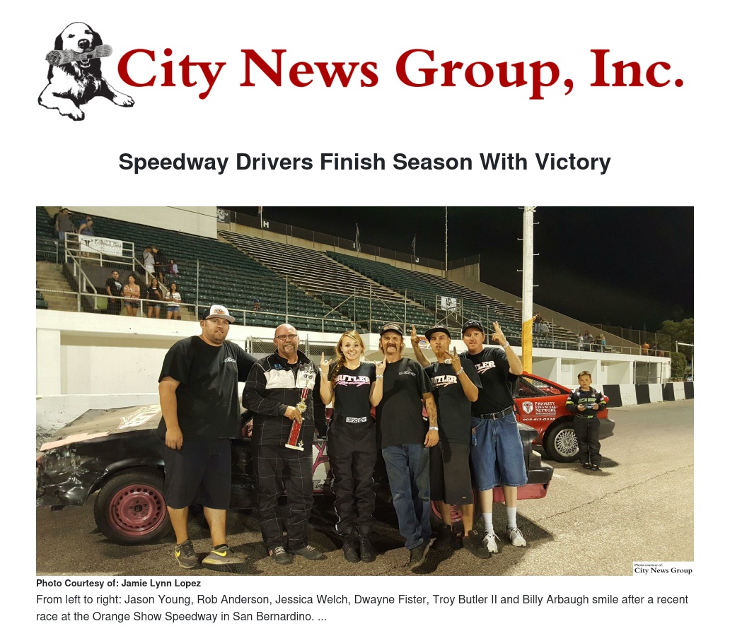ALL>> Driver Jessica Welch of Grand Terrace, finished out the racing season winning Rookie of the Year in her No. 22 Butler Racing, 1984 Dodge Daytona Barber Pole Race Car at the Orange Show Speedway in San Bernardino on Saturday, Sept. 10.