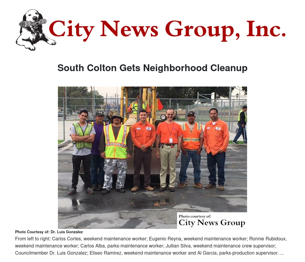 COLTON>> Many believe one of the most exciting things to see in any community is people coming together and recently, 40-45 residents came together in coordination with the City Parks Department and Councilmember Dr. Luis Gonzales for the annual “Neighborhood Cleanup” in south Colton.