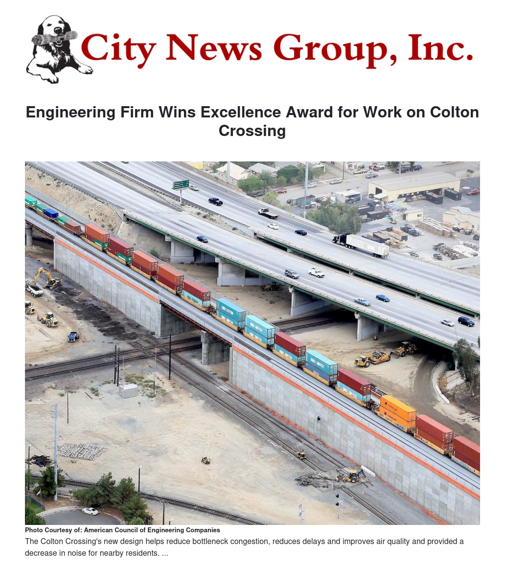 Engineering Firm Wins Excellence Award for Work on Colton Crossing