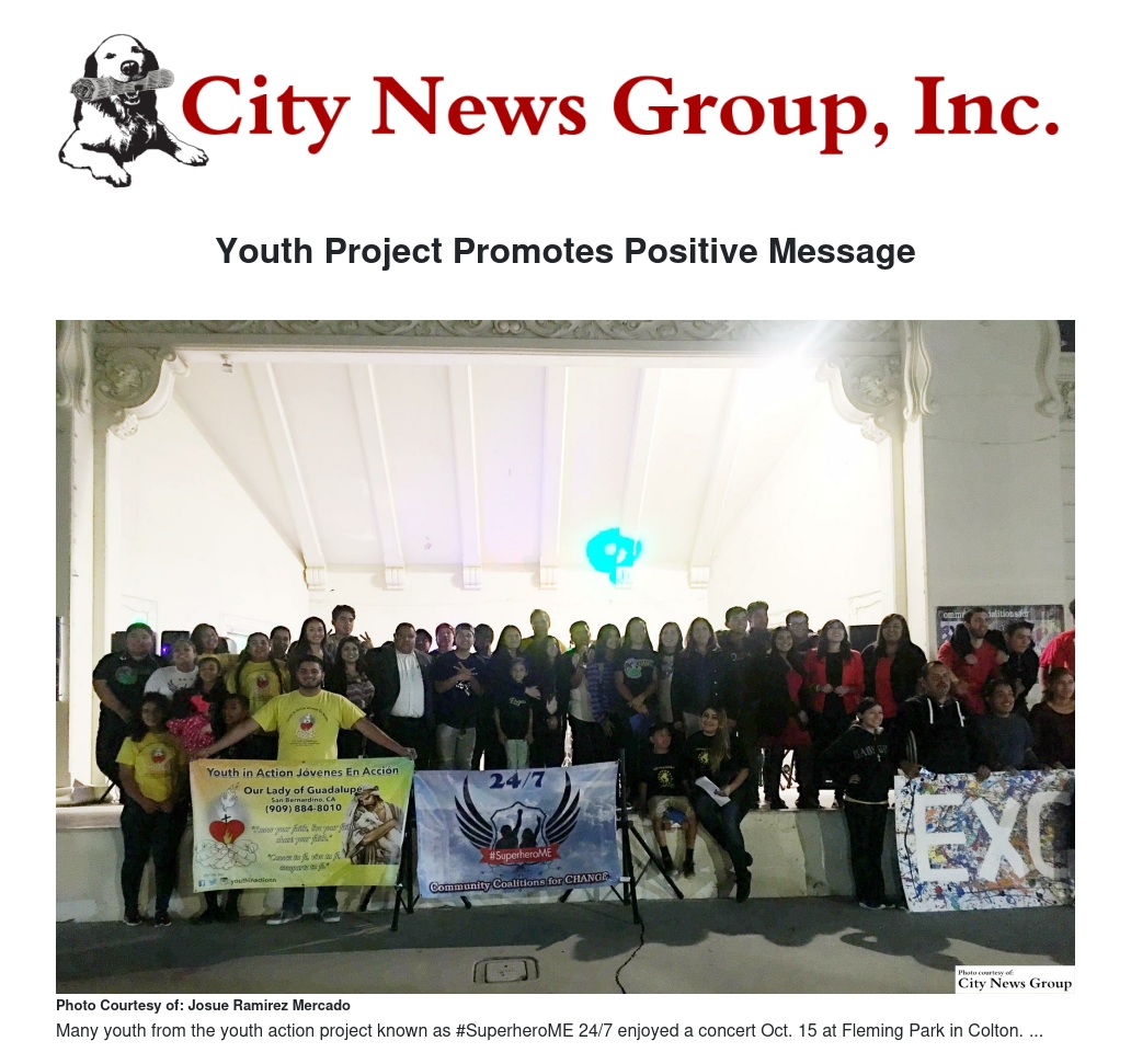 COLTON>> On Oct. 15, a concert was held at Fleming Park in Colton hosted by youth who participated in the youth action project known as #SuperheroME 24/7. The celebration at the park was a youth call to action asking adults to make a commitment: “Don’t provide, ignore, or excuse the use of alcohol with kids.”