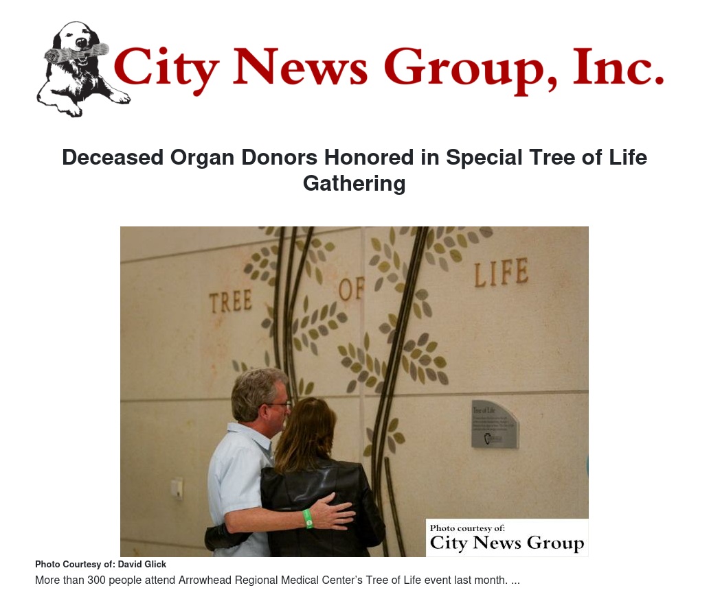 Last month, Arrowhead Regional Medical Center partnered with OneLegacy, an organ, tissue and cornea donation organization, for a Tree of Life gathering to honor and remember the lives of many who have passed.