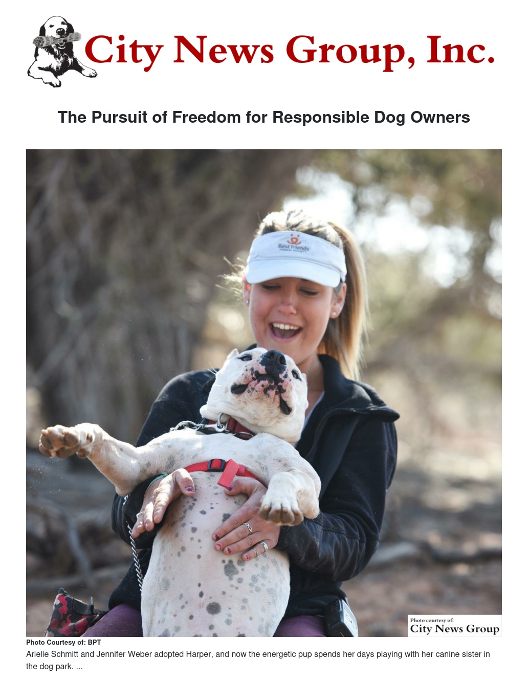 Arielle Schmitt and Jennifer Weber adopted Harper, and now the energetic pup spends her days playing with her canine sister in the dog park. She spends her evenings cuddled up on the lap of one of her new pet parents. "Harper has completed our family," Schmitt says.