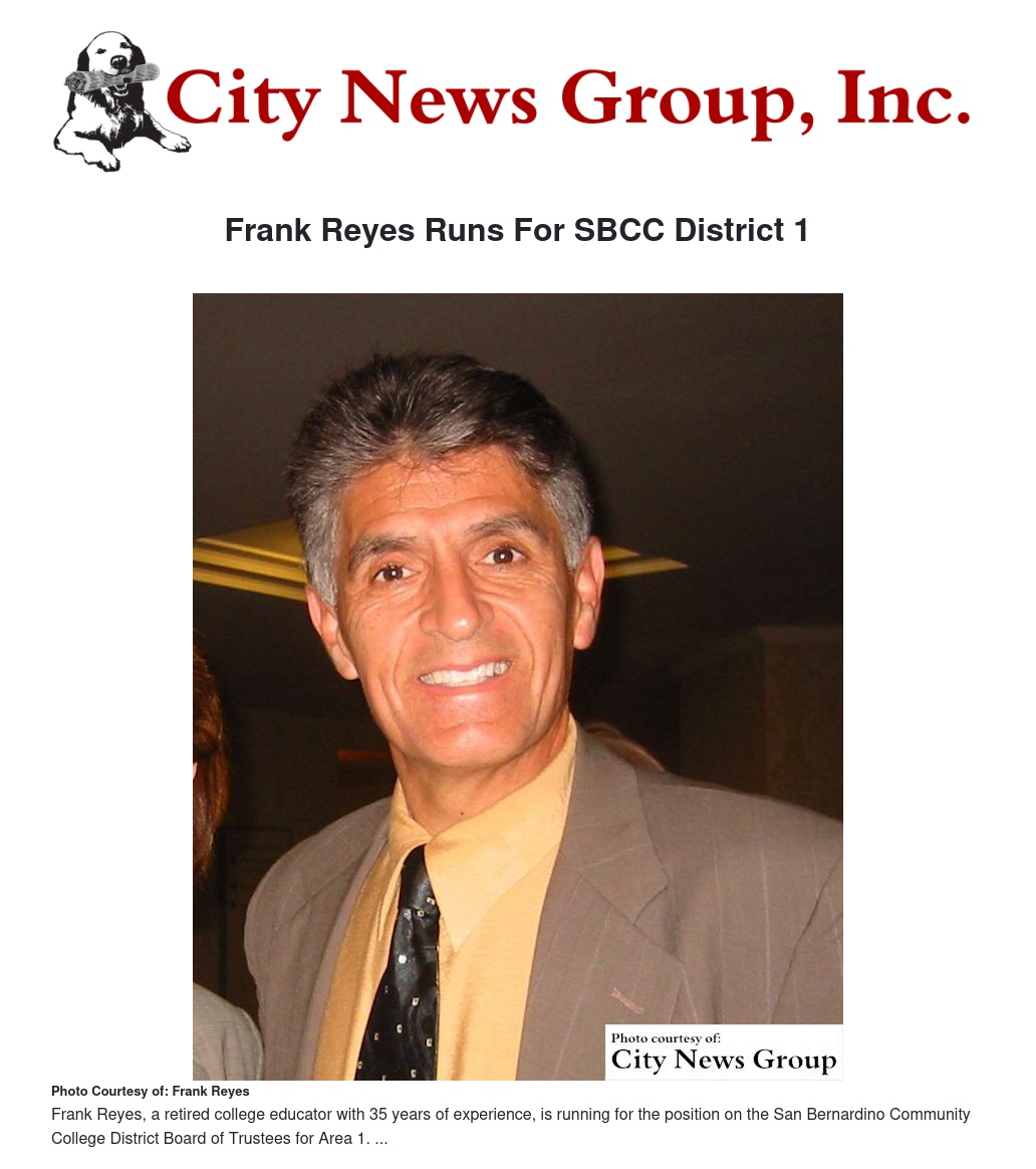 Paid for by Committee to Elect Frank Reyes for San Bernardino Community College District Board of Trustees Area 1 2016