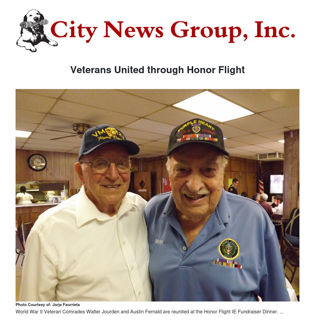 The Honor Flight program operates on donations from organizations and individuals. One of the ways the program acquires contributions is by hosting fundraising events. The most recent fundraiser was a veterans reunion dinner for World War 2 vets held at the American Legion Hall in Rialto. Vets and their loved ones along with supporters were among the 195 locals in attendance who helped raise over $2,000 to the program.