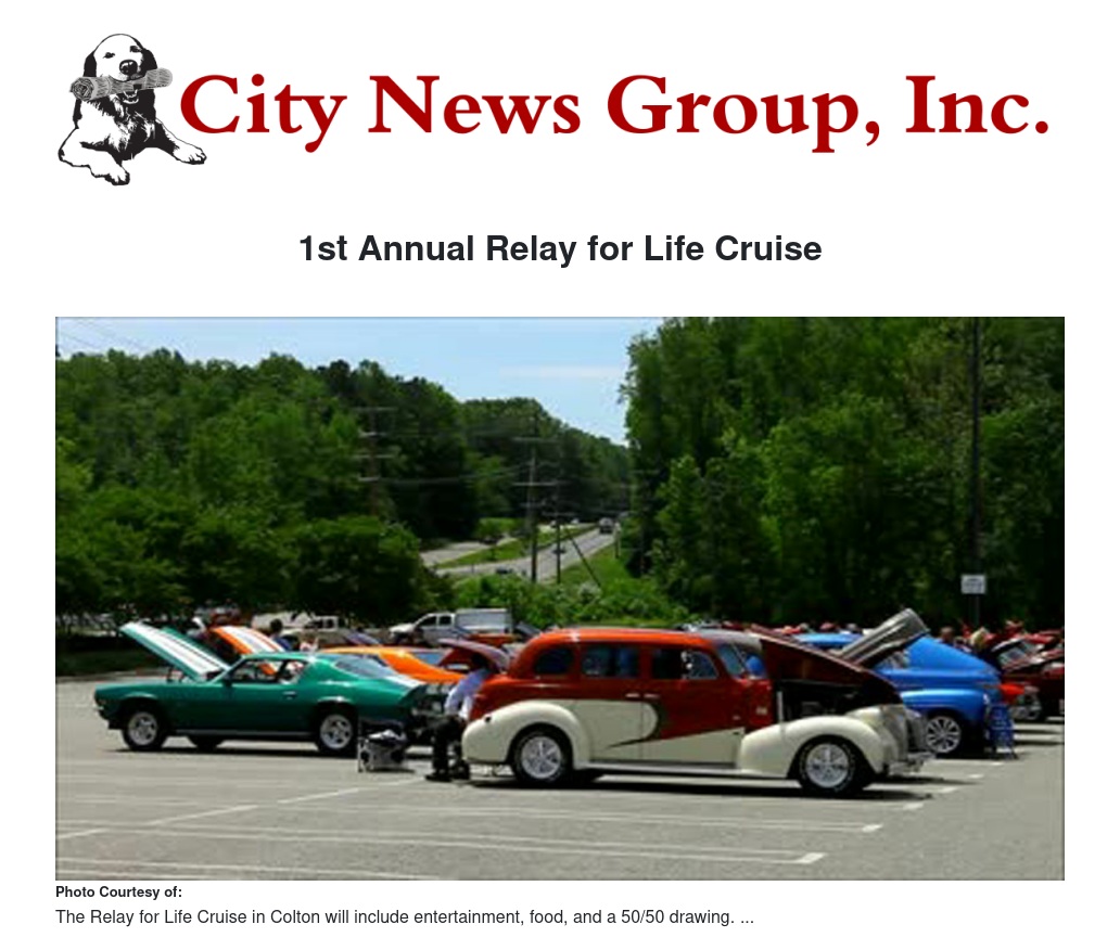 The 1st Annual Relay for Life Cruise is sponsored by the the Relay for Life Team "The Wobbles" along with El Augila Real Restaurant at the Cesar Chavez Park on Colton Ave/E St. on Saturday, April 26th, 2014 from 11 a.m. to 6 p.m.