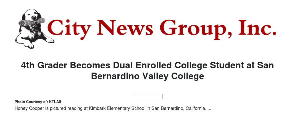 4th Grader Becomes Dual Enrolled College Student at San Bernardino Valley College by Eric Montgomery - City News Group, Inc.