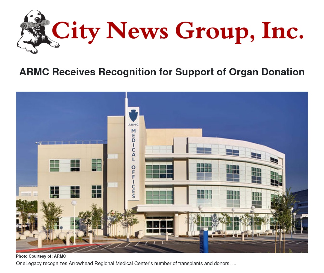 Arrowhead Regional Medical Center’s commitment to saving lives through donation was recognized by OneLegacy, the federally-designated organ, eye and tissue recovery agency in the greater Los Angeles Metropolitan area, during the agency’s annual Donation & Transplantation Symposium held recently in Pomona.