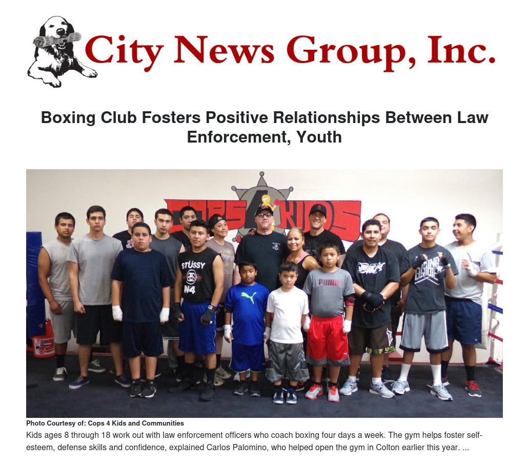 The Colton area gym is part of the Hemet-based Cops 4 Kids and Communities, and was brought to the local area with the help of Carlos Palomino, who for the past 10 years has worked with the Colton Police Department’s PAL boxing program.
