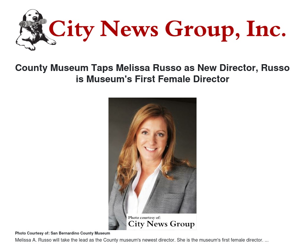 "Bringing Melissa Russo to San Bernardino County is a major step toward fulfilling the commitment made by the Board of Supervisors to put our museum system back on the right track," said Board of Supervisors Chairman James Ramos.