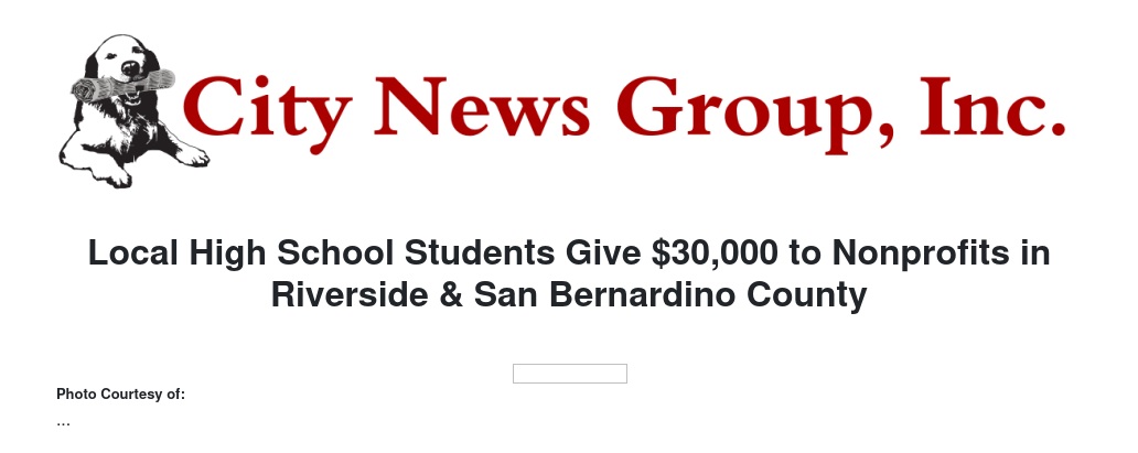 The Community Foundation serving the Counties of Riverside and San Bernardino has area high school students fund grants for local nonprofits.