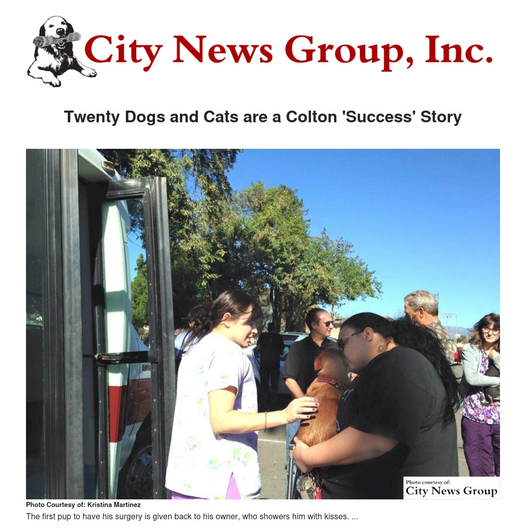 The first city-wide clinic of its kind, spay and neuter surgeries were offered free of charge to the first 20 Colton residents who submitted interest forms to the city. In all, 19 dogs and one cat were spayed or neutered on Saturday.