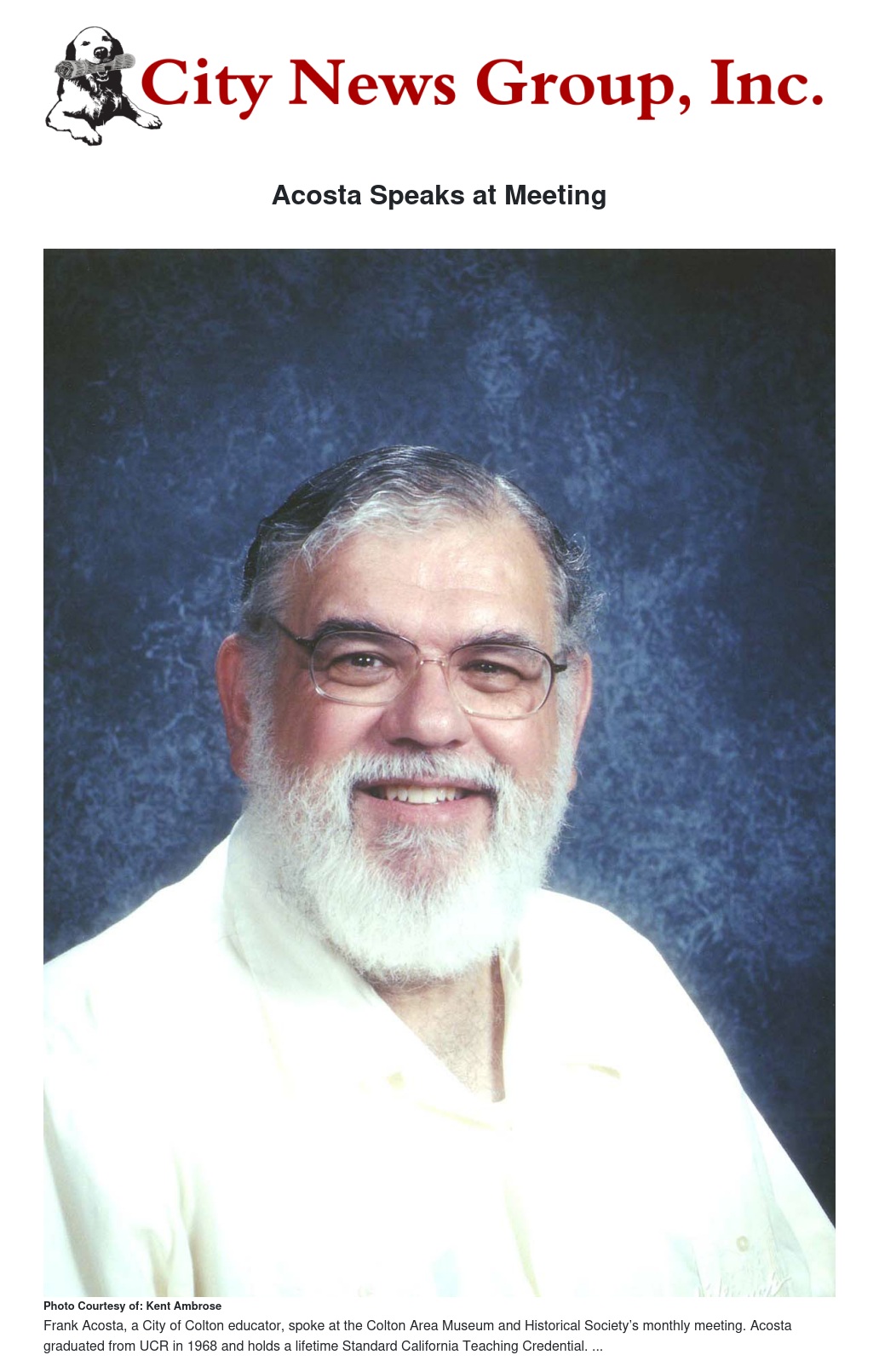 City of Colton educator Frank Acosta spoke at the Colton Area Museum and Historical Society’s monthly meeting earlier this month on May 9, speaking on the history of Colton Junior High School (CJHS) (now Colton Middle School [CMS]), where he worked for 39 years until his retirement in 2010.