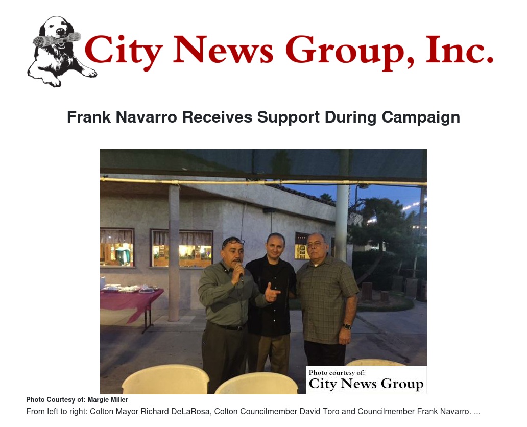 “There takes a lot of things in order to be successful for your residents,” DeLaRosa said. “In order to be successful for your businesses and to carry Colton to a new level is very important. Frank has that.”