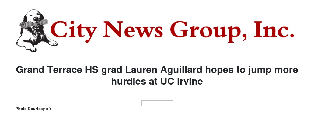 Aguillard was a three-sport athlete at Grand Terrace and will attend UC Irvine next year as a biology major and attempt to make the Anteaters’ track team as a walk-on in the 400-meter hurdles. She was accepted at ten other colleges but instead chose her “dream school.” A two-time 1st Team All-Sunkist League basketball player, league singles tennis champ and member of the league championship 1600-meter relay team, she never could become the league champion in the hurdles which is her featured event.“I won the hurdles at every league meet for three years and was the uncrowned champion but something would always happen at the league finals.” She tripped and fell as a soph and junior, and suffered a pulled hamstring as a senior. Aguillard considers her serious fall in the hurdles as a junior as a turning point in high school.