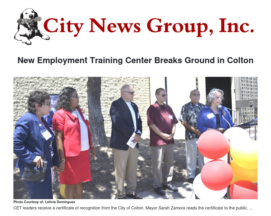 Colton will become home to the newest campus of the Center for Employment Training (CET), a non-profit career and technical education facility when leaders from CET and local and state leaders broke ground on the project, which will be located on Pepper Avenue, Aug. 14.