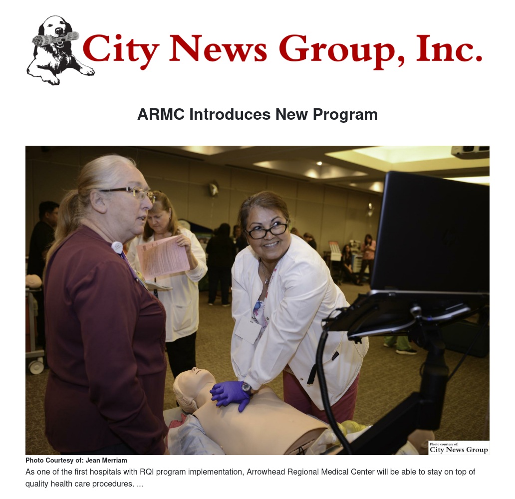 COLTON>> Arrowhead Regional Medical Center announced it is one of the first hospitals in Southern California now using the Resuscitation Quality Improvement® Program (RQI), a comprehensive training program from the American Heart Association that addresses the problem of rapid skills deterioration. During a Nursing Skills Day at 7 a.m. on April 11, ARMC debuted advanced Simulation Stations that were positioned throughout the hospital. This enabled healthcare workers refresh vital CPR skills in just minutes every 90 days.