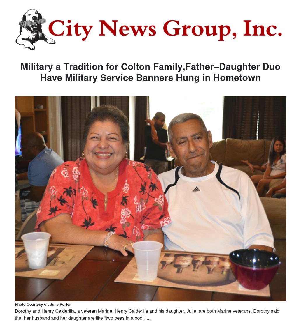 Her father, Henry Calderilla, joined the Marine Corps just before he turned 20, and served a 13-month tour in Vietnam in 1966 and 1967. After serving his contracted four years in the Corps, he returned home where he went to school and then began work with the San Bernardino County Sheriff’s Department.