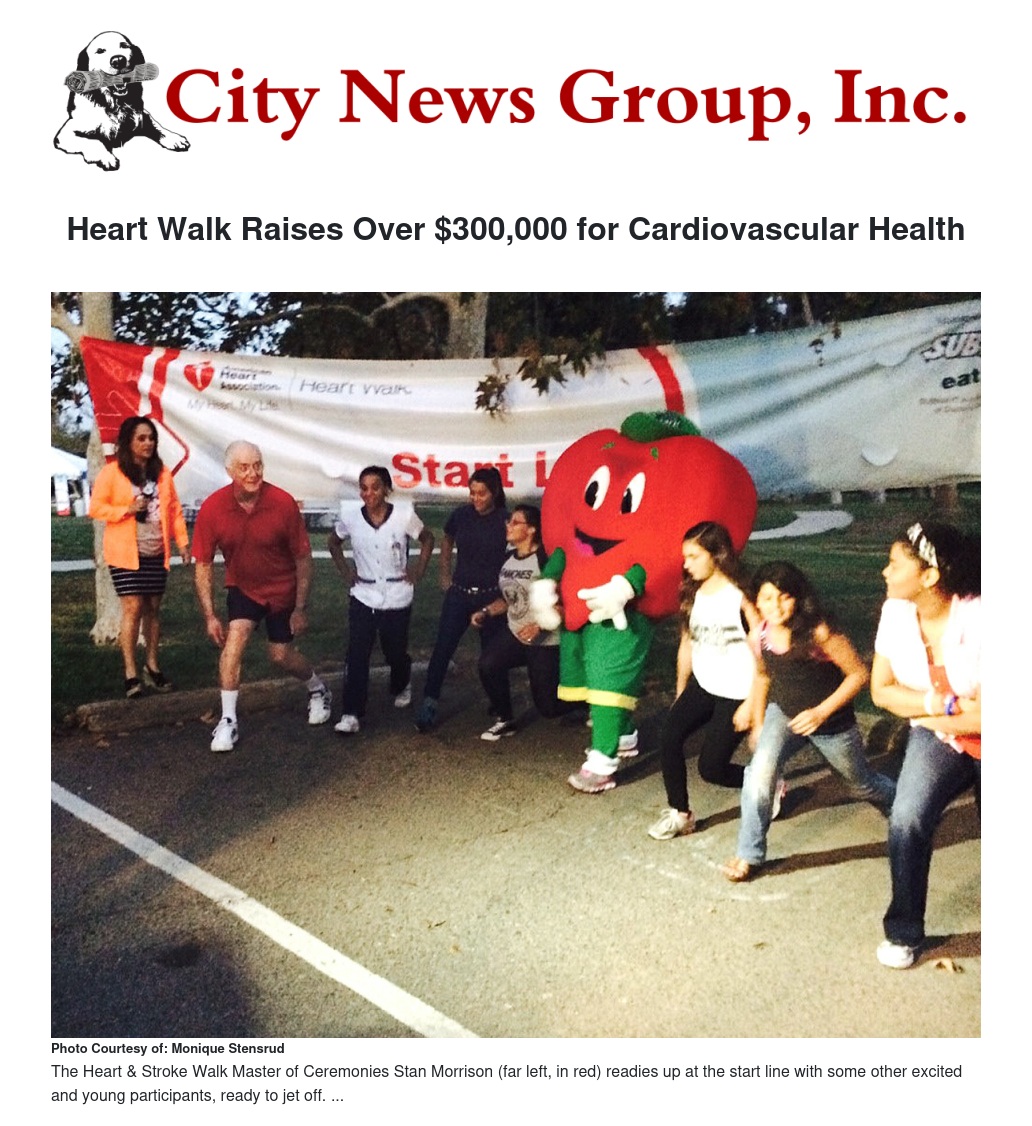 Master of Ceremonies Stan Morrison welcomed 6,253 to the American Heart Association's 2014 Inland Empire Heart and Stroke Walk at Rancho Jurupa Park Saturday, Sept. 20, raising awareness about cardiovascular health, raising funds and honoring survivors and lost loved ones.