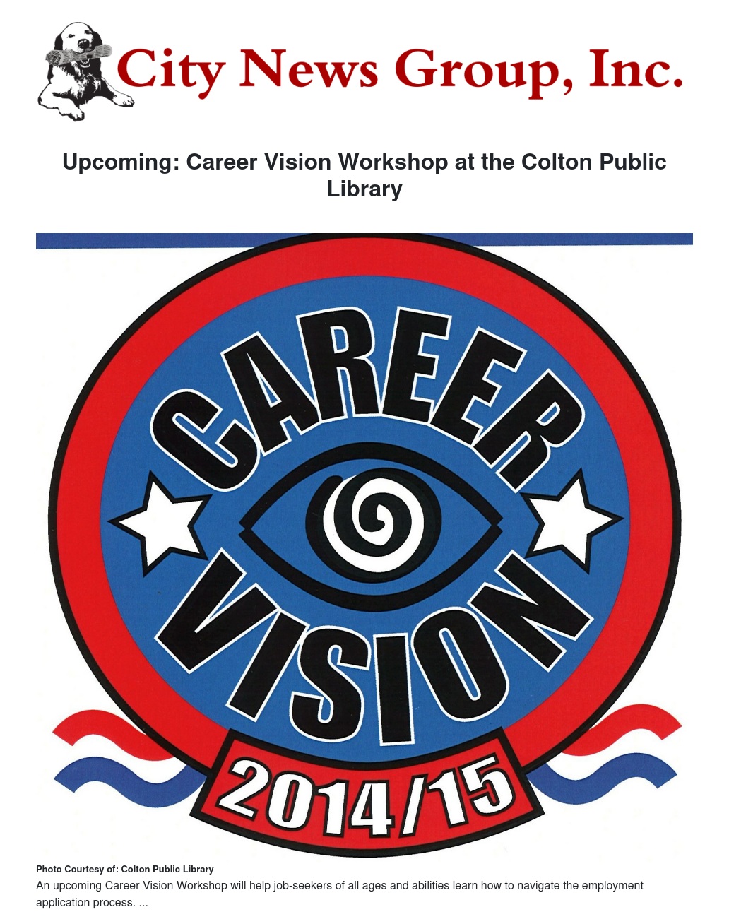 The Colton Public Library will be hosting the Career Vision Workshop, presented by the Inland Library System, on Jan. 9 from 10 a.m. to 4 p.m. The workshop provides out-of-the-box ideas that turn the job search process from reactive to proactive.