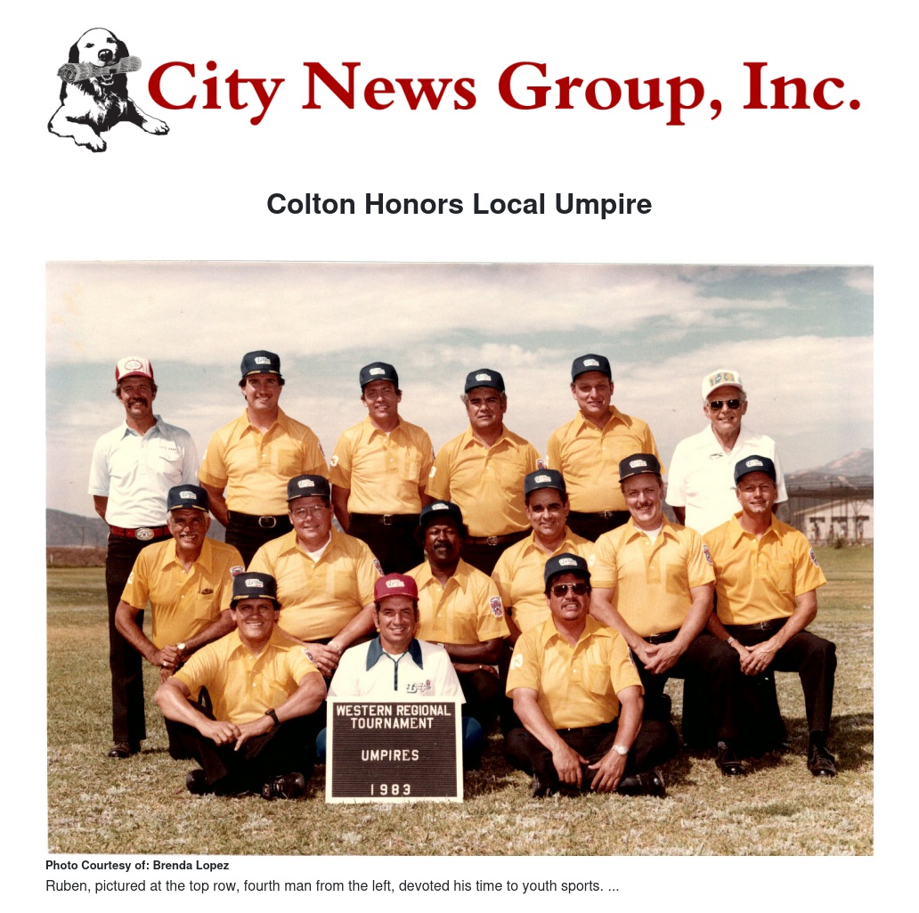 He shares that one of his greatest moments was in 1983 when he represented Colton as an umpire at the Western Regional Championship in San Bernardino. Acevedo was chosen as one of 12 Empires from thousands of people in 11 states. Lopez stated, “My dad was very involved in youth sports. In the 20 years he was involved, he mentored a lot of his players. The people he coached still remember him and their kids are now in sports.”