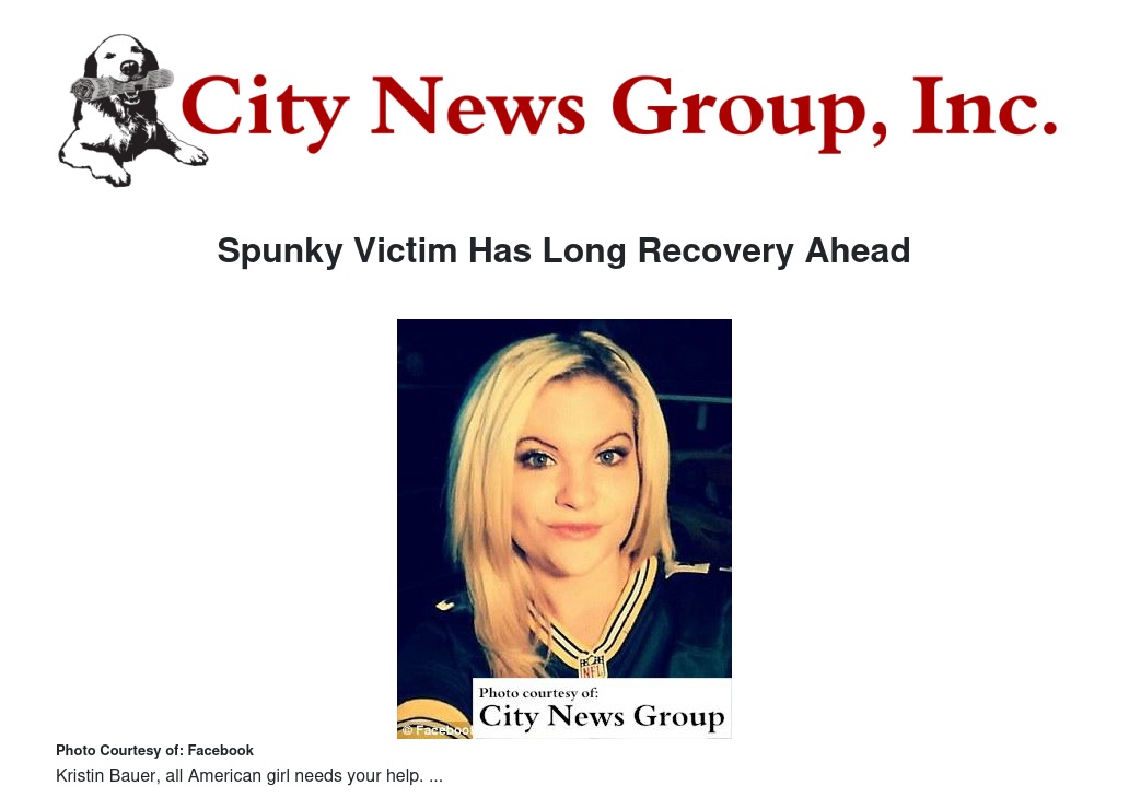 Those interested in contributing to the foundation set up by Mr. Schaefer to help Kristin through her recovery are asked to make checks payable to "The Kristin Bauer Foundation" and mail them to City News Group, Inc., 22797 Barton Road, Grand Terrace, CA 92313, or go to www.gofundme.com/HelpKristinBauer.